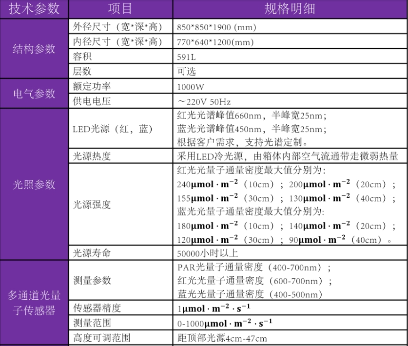 可調(diào)光譜人工氣候箱技術(shù)參數(shù):