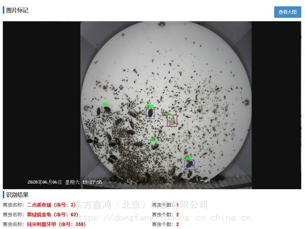 遠程蟲情分析測報儀利用現(xiàn)代光、電、數(shù)控技術(shù),實現(xiàn)了在無人監(jiān)管的情況下,能自動完成誘蟲、殺蟲、收集、分裝、排水等系統(tǒng)作業(yè),通過GPRS移動無線網(wǎng)絡(luò),定時拍照采集接蟲盒內(nèi)收集的蟲體圖片,自動上傳到遠程物聯(lián)網(wǎng)監(jiān)控平臺,平臺每天自動記錄采集數(shù)據(jù),形成蟲害數(shù)據(jù)庫,可以通過數(shù)據(jù)列表和圖表的形式展現(xiàn),工作人員可隨時遠程了解以蟲體的情況和變化,制定防控措施。