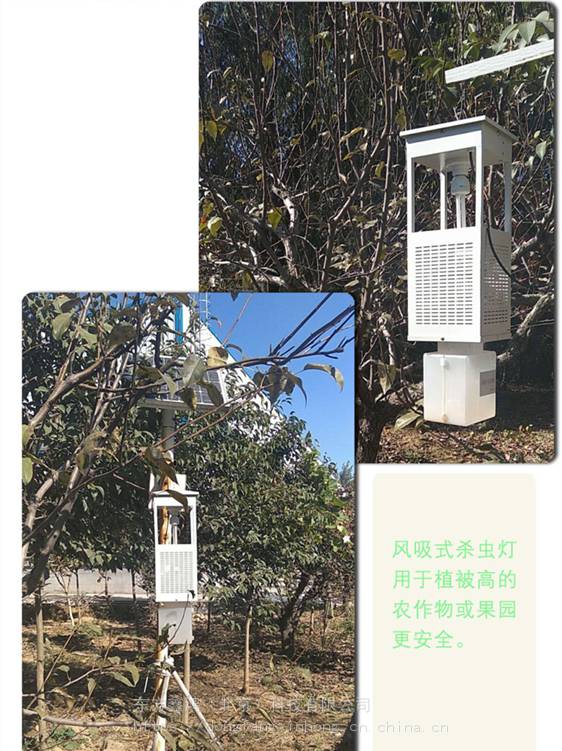 風吸式殺蟲燈是*款公司科技研制的物理滅蟲器械,采用抽拉式箱體及設備集成結構,利用光波引誘害蟲成蟲撲燈,然后風機轉動產生氣流將蟲子吸入到收集器中,使之風干、脫水,達到殺蟲的目的。